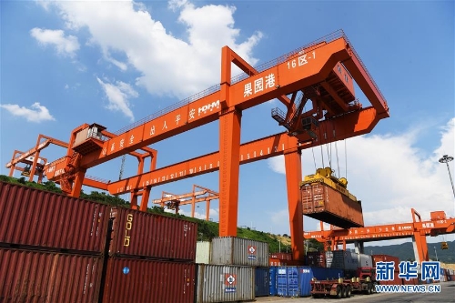 这是重庆果园港装载作业现场(8月20日摄)。 新华社记者王全超/摄