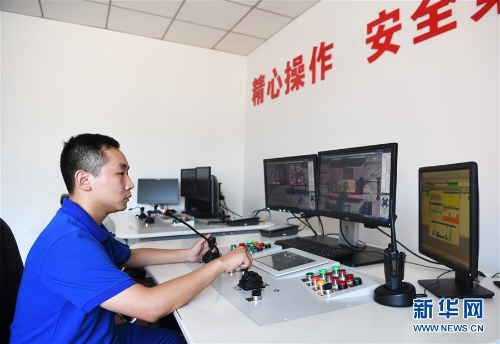 8月20日,重庆果园港工作人员通过智能场桥远控系统进行集装箱吊装作业。新华社记者王全超/摄