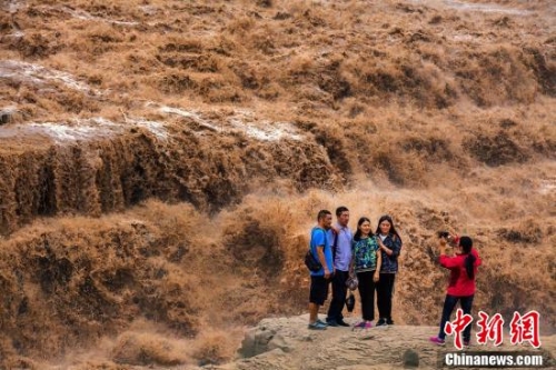 游客在黄河边留念。
