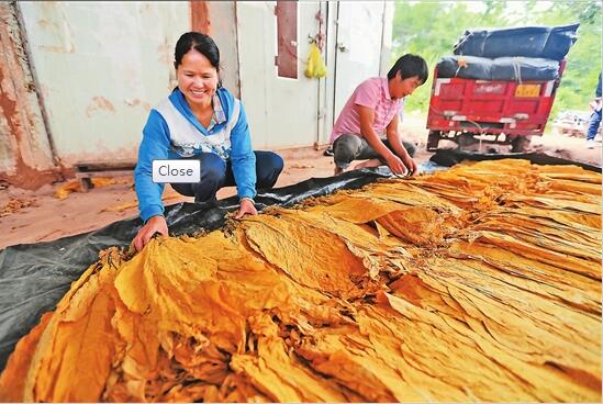 9日11时,在通关镇毕库村上寨小组的烟叶预检站,种植大户郑红伟用农用车送来了满满一车烟叶。他家今年种了15亩烤烟,这已是今年第二次交售烟叶,为防止地震对已经烤好的烟叶造成损失,他将分拣出的近400斤烟叶全都送了过来。预检站的工作人员给他开通优先通道,分级定价,当天他就能拿到烤烟款。