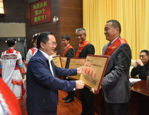 副市长金振辉宣读了《中共丽江市委丽江市人民政府关于对教育工作先进集体和个人进行表扬的通报》。丽江民族中等专业学校等7个“先进集体”、周碧媛等87名“优秀教师”、刘清鸿等12名“优秀教育工作者”、高桥光等5名“最美乡村教师”获通报表扬。崔茂虎等领导为获通报表扬的先进集体和个人颁发匾牌或证书。华坪县女子高中饶发光老师、永胜县一中杨文荣老师分别代表获通报表扬的先进集体和优秀教师作发言。