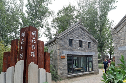 脱贫后的张庄村创建了中国乡村第一个院落式图书馆——桐花书馆,村民闲余时便来这里读书。