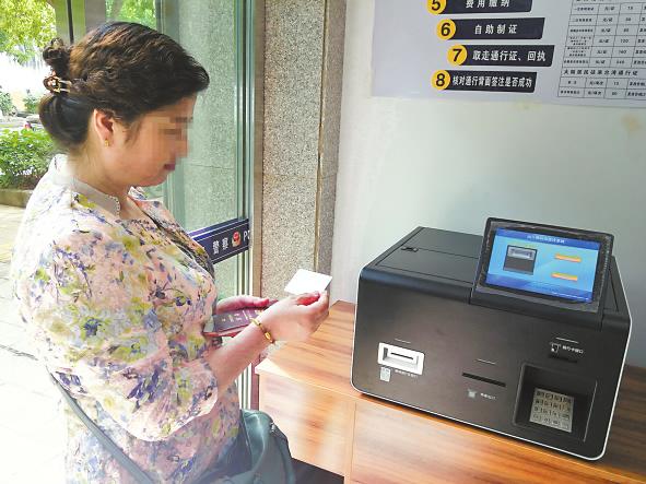 近日,杨女士拿到易门县首张通过自助签注机办结的港澳台通行证。