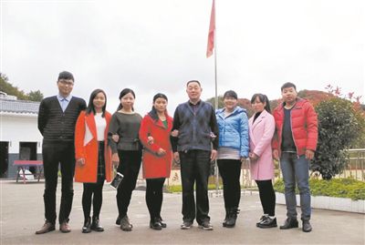 梁家川小学的老师合影,左起闻先磊、胡列琴(实习)、杨静、吴艳、陈世林、王珊珊、汪苹、何义稳。(本文图片均由受访者提供)