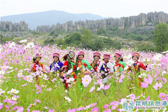 秋天,是乃古石林最美的时节,种植面积超过100亩的波斯菊,层层叠叠,竞相绽放。娇艳的鲜花和雄奇的石山带来了优美的视觉盛宴。不是春色,胜似春色。据介绍,花期将持续到10月末。