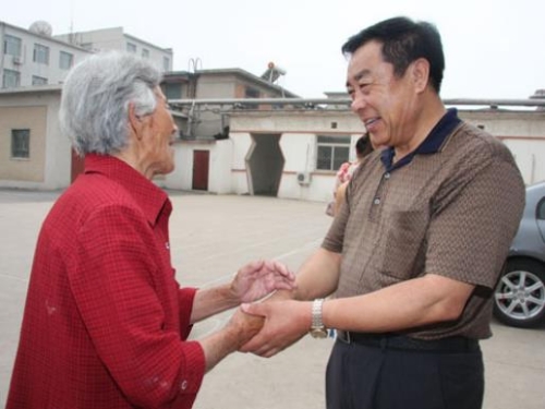 2010年6月29日,周恩义慰问渤海街道测井社区老党员(来源:东北新闻网)