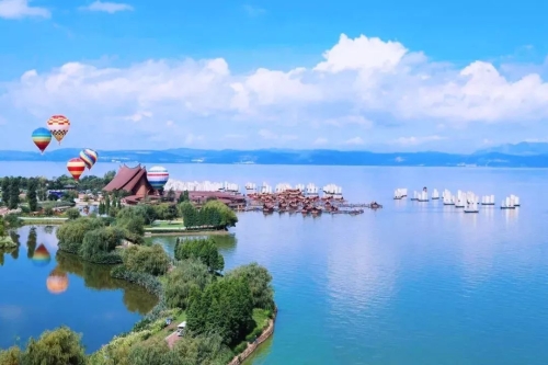 风和日丽中的七彩云南·欢乐世界滇池之眼摩天轮