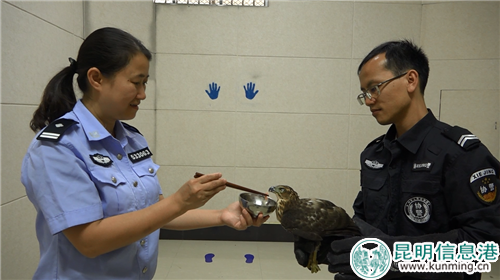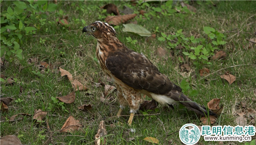 昆明信息港讯 记者甘凌菲 通讯员田仁梅 赵选富 近日,一只被人非法训养的猛禽飞入文山市公安局大院内,不慎撞上玻璃坠落到草坪上,被值班人员发现救助,并送交森林公安机关放飞大自然。