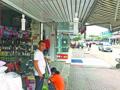 长约2公里的佳海环形路上,分布着数不清的小餐饮店、小超市、酒店和网吧,商户们在此或租或买门面,将这条路经营成了佳海工业城庞大的后勤系统。在这里,商家们“自装路灯各照门前路”,成了一种普遍现象。