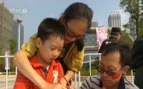 居民唐珍说,让孩子感受一下这样的一个氛围 播种一颗爱国的种子 在他心里面