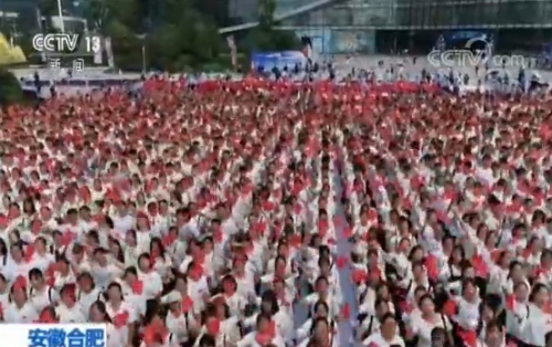 央视网消息:在安徽合肥、浙江长兴等地,人们绘制国旗、共唱祝福之歌,祝愿祖国繁荣昌盛,人民幸福安康。