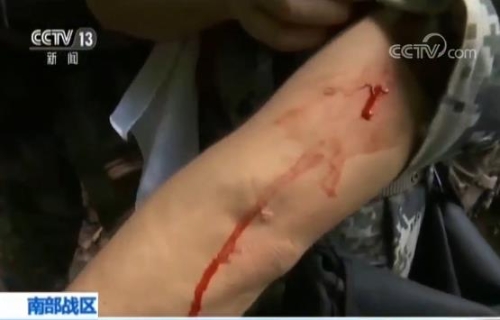 南部战区陆军某边防旅某连班长 李雪涛:一般蚂蟥咬到伤口过后,不要直接扯下来,因为一扯下来,蚂蟥的牙齿就粘在你肉里面,容易发炎,一般就是要么把火机点一会烫一下,要么涂点风油精,涂点清凉油它也会自己下来。