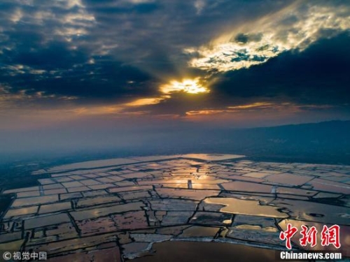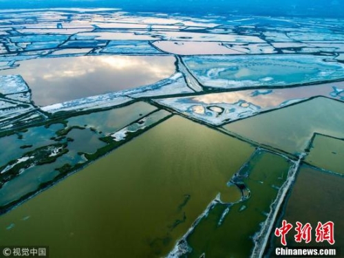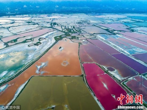 入秋以来,随着气温的改变,山西省运城盐湖泛起出色彩斑斓、美不胜收的秋天特有的七彩景致,非常迷人。