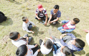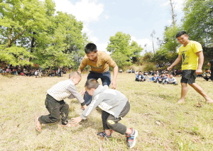 村里的孩子从小就参加摔跤比赛。记者王俊星/摄