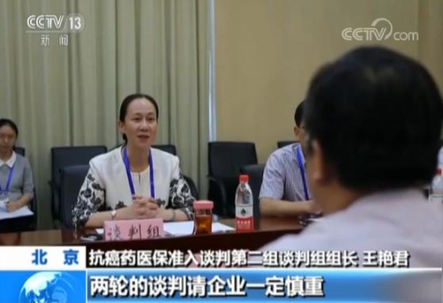 央视记者张萍:现在是2018年9月15日11点35分,抗癌药进入国家医保的准入谈判正在我身后的这间会议室进行当中,经过近三个月的准备,涉及到12家企业抗癌药品将在今天完成最后的价格谈判。