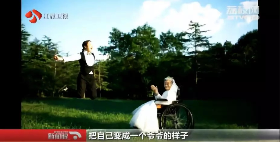 她突然想到:为什么不能扮成爷爷和奶奶拍婚纱照呢?这样,她在晚年生活中也会有一个念想,“让她再高兴高兴,回到少女年代”。