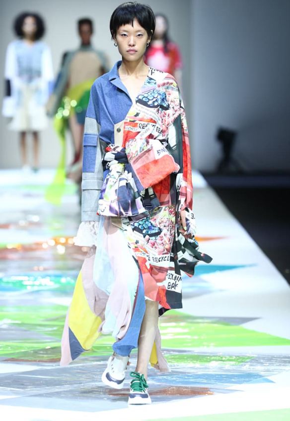 本季,女装品牌Fake Natoo设计师张娜带着她的个人品牌再造衣银行(Reclothing Bank)重返上海时装周秀。她的设计用料源自再生及环保面料。此前,她还与星巴克及饿了么达成了合作。本季她以“天赐”(Heaven Sent)为主题,将废棉、亚麻、可回收的PVC与木浆制成的纤维混合,为可持续时尚增添了一份优雅、注入了一抹亮色。