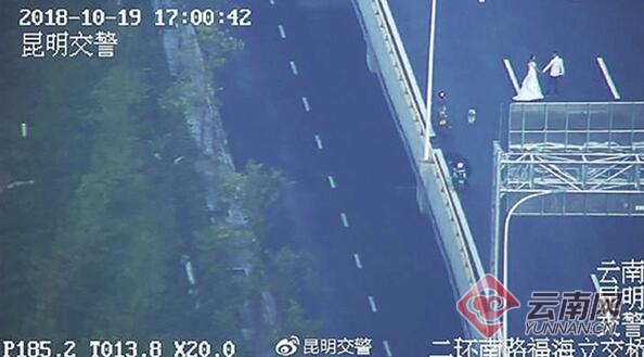 结婚纪念日干奇葩事 昆明一对夫妻骑车上高架拍婚纱照