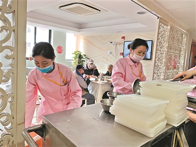 午饭时间,王金凤和肖丹为老人们分发午饭。广州日报全媒体记者 周裕妩/摄