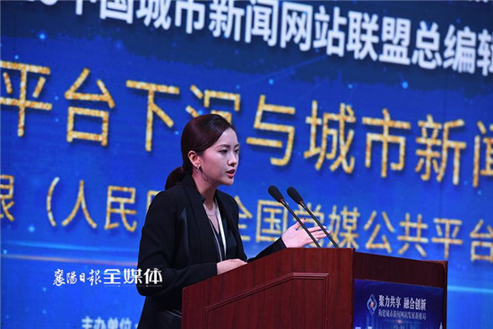 襄阳新媒体集团总经理、汉江网总编辑王雨婷演讲城市新闻网站运营的2.0时代。全媒体记者丁涛 李旭晖摄