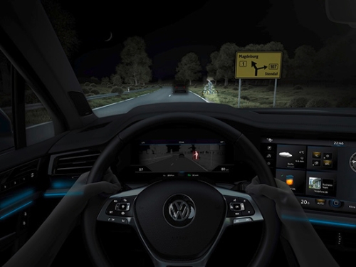 大众汽车品牌董事会成员、研发负责人Frank Welsch博士表示:“全新一代途锐配备了红外线照射夜视系统,能够探测到行人,当行人出现在危险范围内时,该系统不仅会在车辆的抬头显示屏上用黄色或红色显示标记提醒驾驶者,同时还能够通过矩阵式LED前大灯发出快速闪光来对行人进行警示。我们创新的I.Q. Light矩阵式LED前大灯和夜视系统的组合更好的提升了行车安全。”