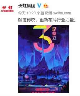 10月24日讯 “长虹60年,是中国制造业的60年。”今天,长虹在其官方微博发布建业60周年活动海报,引发粉丝和业内人士围观。“颠覆传统,重新布局行业力量。”从海报文案可猜测,长虹或有重要布局对外宣布,亦或发布多款新品。