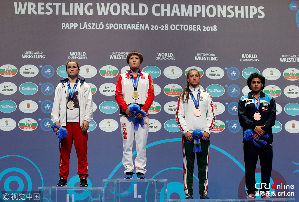 2018年10月25日,在匈牙利举行的2018年世界摔跤锦标赛中,中国选手荣宁宁在女子自由式摔跤57公斤级的比赛中夺得金牌。