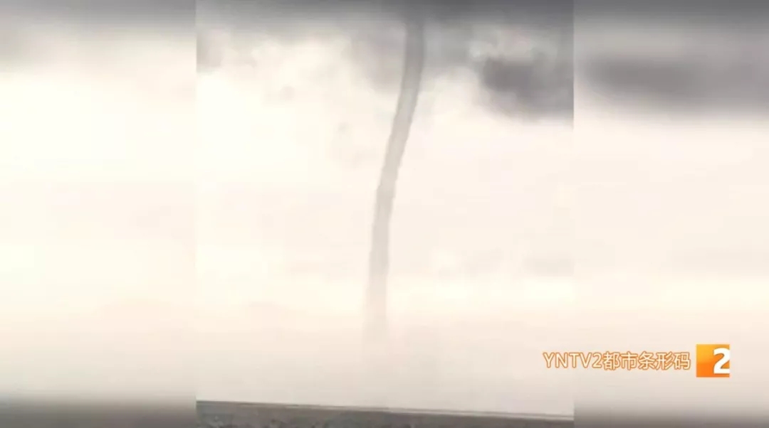 据目击者介绍,水柱顶端连着云层,下方直挂湖面,时而笔直,时而弯曲,在靠近湖面一侧,还激起不少浪花。