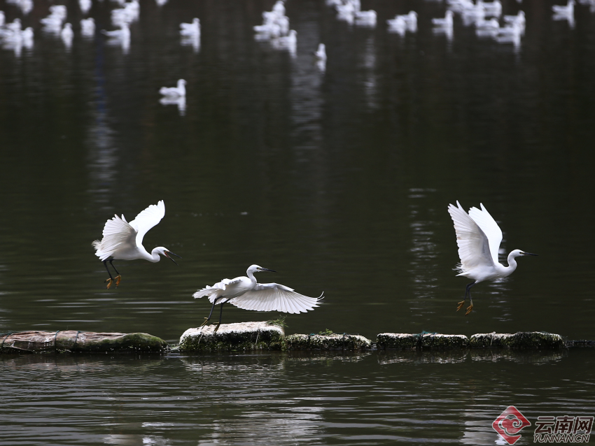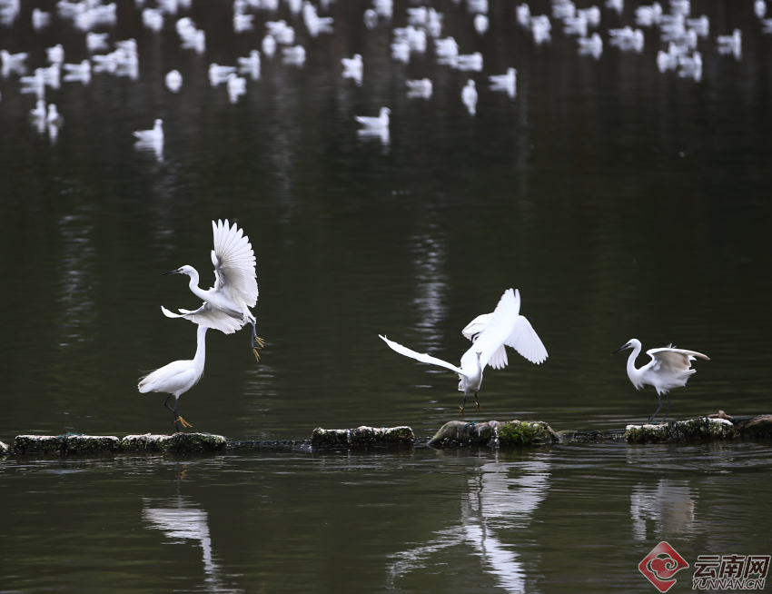 每年十月底,成群的红嘴鸥回到第二故乡春城,鸥群与白鹭为河面增添了无限的灵气和自然美好的和谐旋律,昆明成为全国宜居城市果然名不虚传。