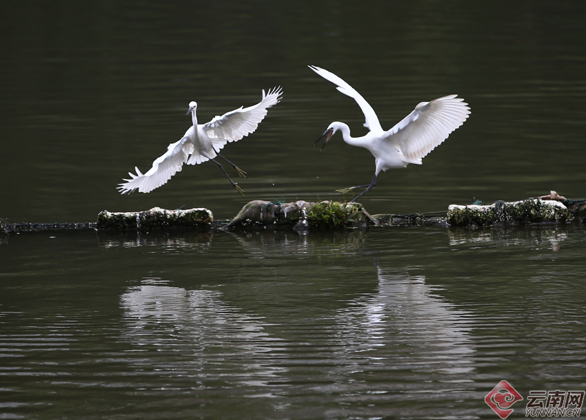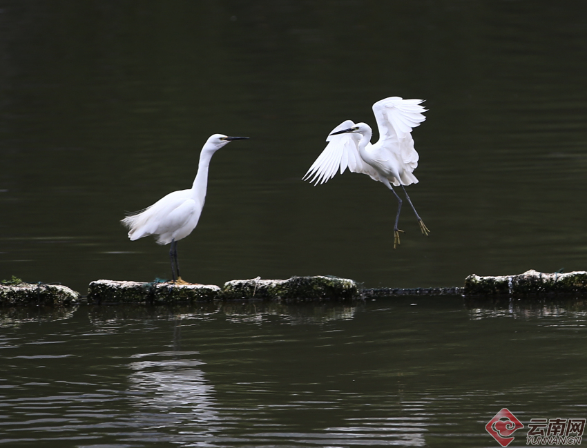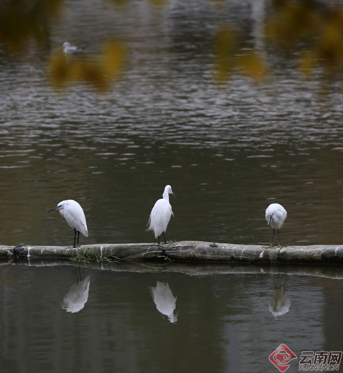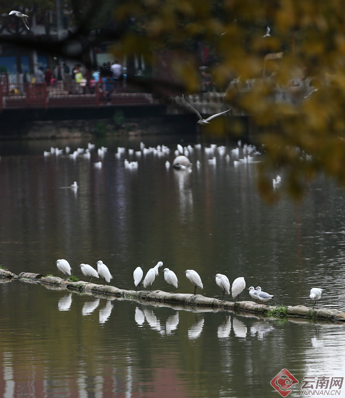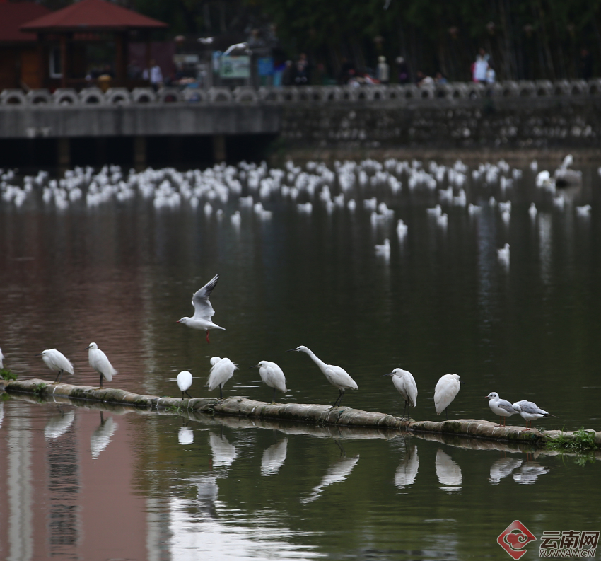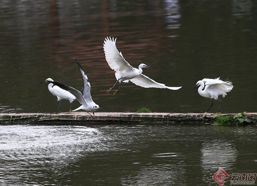 老树红嘴鸥与白鹭 昆明大观河畔美景多