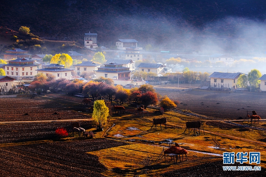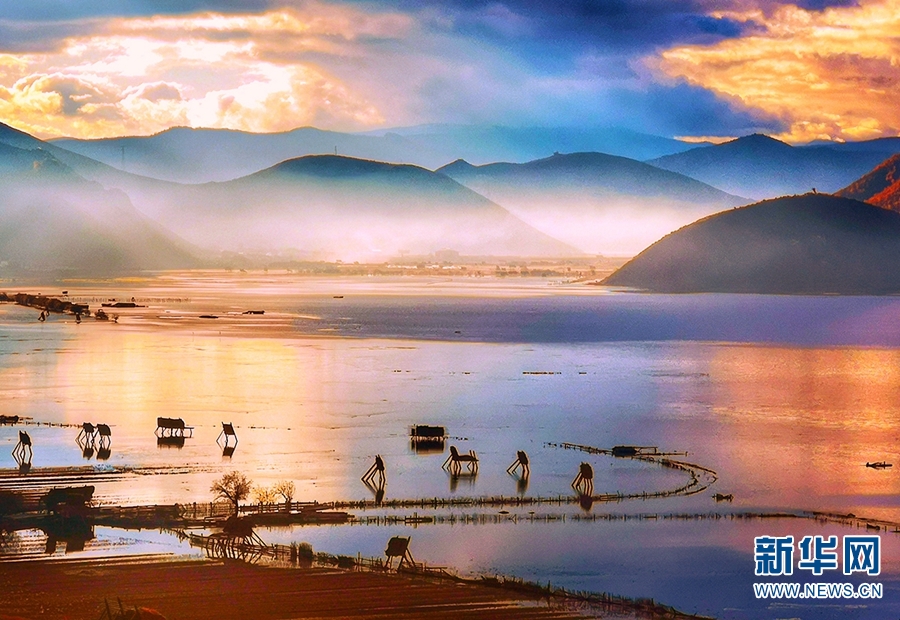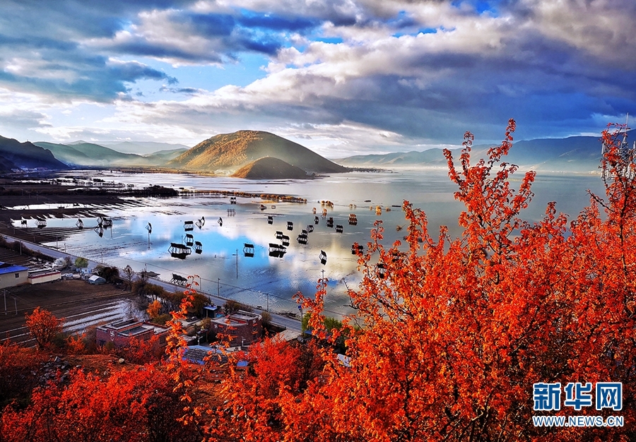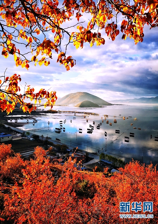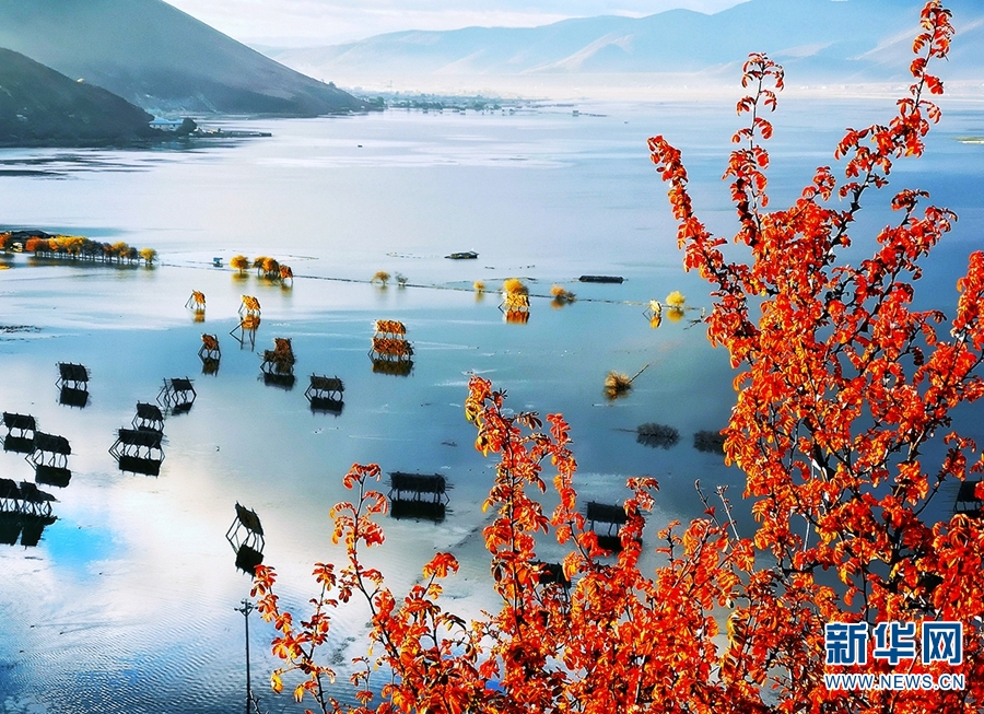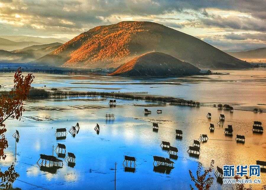 云蒸霞蔚,水光潋滟,如油画般美丽的纳帕海秋景。