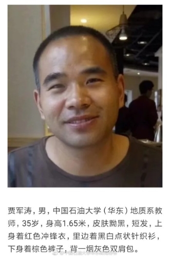 中国石油大学(华东)官网显示,贾军涛今年35岁,2010年进入高校工作,为地球与科学技术学院地质系讲师。贾军涛家人曾在微信公众号上发布“寻人启事”,称贾军涛10月17日到云南省玉龙雪山附近进行野外勘探,于当天下午6点左右在丽江玉龙雪山珍珠湖一带失联。