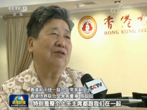 香港和平统一联合会常务副会长、香港侨界联合会常务董事 陈聪聪:现场的气氛非常热烈,整个上午主席都跟我们在一起。而且下来跟每一位握手,这是难得的机会。