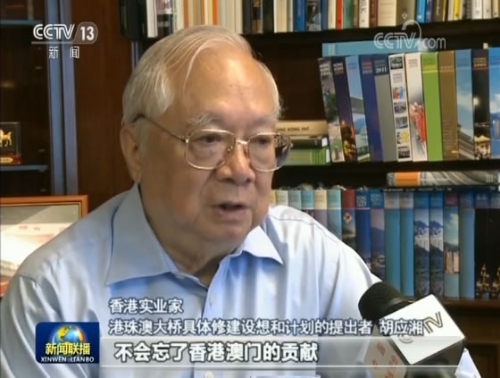 香港实业家、港珠澳大桥具体修建设想和计划的提出者 胡应湘:我印象最深刻的就是,习主席说国家人民不会忘了香港澳门的贡献。不但是肯定,而且感谢。这个对我,我是相当感动的。