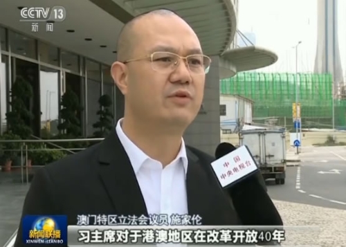 澳门特区立法会议员 施家伦:习主席对于港澳地区在改革开放40年,是给予肯定。是一个参与者的同时、贡献者的同时,也是一个得益者。