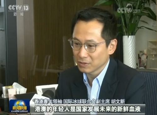 香港青年领袖、国际冰球联合会副主席 胡文新:习主席昨天(12日)说,港澳的年轻人是国家发展未来的新鲜血液,这个是习主席对年轻人的肯定。习主席希望看到年轻人可以发挥自己,也可以创一条新的路给自己。