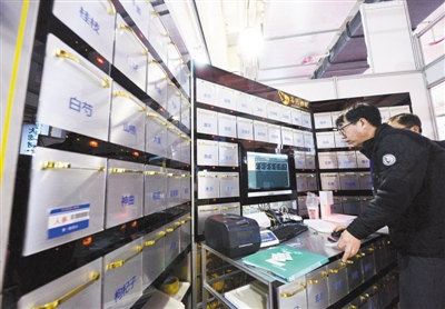 参展商展示电脑自动下单、配药的智能中药房系统