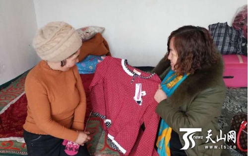 侯景莲买新衣裳送给亲戚噢格丽罕 · 伊斯马伊力。