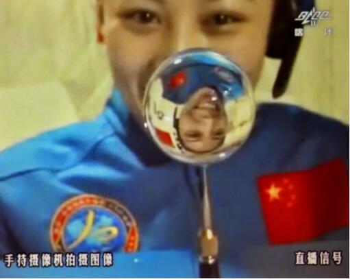 “神舟十号”航天员王亚平在“天宫一号”组合体中进行太空授课水球实验 图片来源:央视网