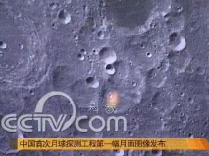“嫦娥一号”传回的第一幅月面图像 图片来源:央视网
