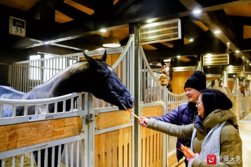 嘉宾与新疆古生态园的汗血宝马亲密接触。图 / 中青旅联科