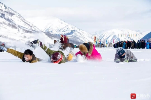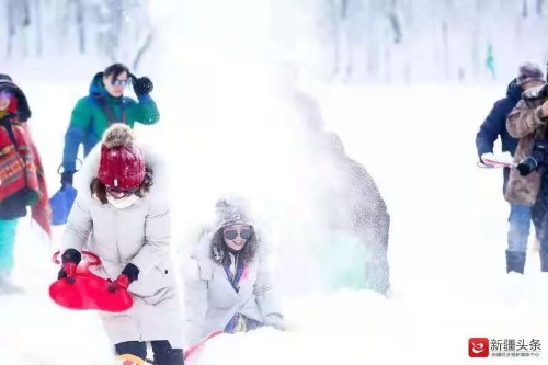 嘉宾们在禾木冰雪嘉园玩雪。图 / 中青旅联科