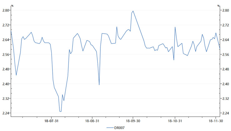 11月以来公开市场到期压力较小,年底财政支出力度也在加大,银行体系流动性总量仍处于合理充裕水平,市场利率表现平稳。
