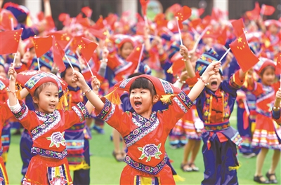 12月6日,广西南宁市滨湖路小学举行第15届体育节,孩子们在开幕式上进行文化表演。新华社发