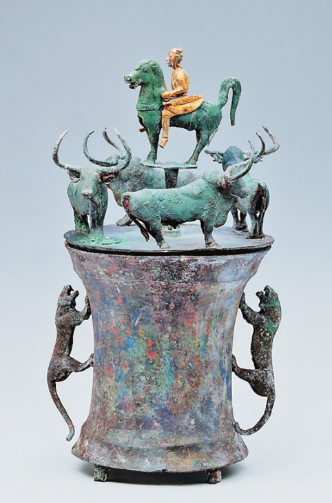 省博物馆入选的3件国家宝藏的关键词分别为“声”“青铜”“天龙八部”。“声”在省博物馆的众多馆藏文物中,具有重要意义,它是中华人民共和国国歌的作曲者聂耳使用过的小提琴。“青铜”讲述的是贮贝器的故事。贮贝器是古滇国特有的青铜器,具有浓郁的地方特色和民族风格,大多用来贮存贝币,相当于我们今天的存钱罐。同时,贮贝器也是象征权贵地位、祭祀祖先的重要器物。四牛鎏金骑士铜贮贝器为典型的束腰圆筒形的贮贝器,器腰两侧各装饰一个虎形耳,虎作向上攀爬状,细节刻画极其逼真。器物盖上有4只体格健硕的牛逆时针围绕中心作奔跑状,而中心有一个圆柱柄托盘,托盘上有一个骑着高头大马的骑士人物形象。纵观该贮贝器,最为显眼的当属鎏金骑士。鎏金骑士位于整个器物中间位置,为当时古滇国贵族武士形象。“天龙八部”则介绍大理国银鎏金镶珠金翅鸟。出土于大理崇圣寺千寻塔,金翅鸟梵名为“迦楼罗”,被尊为大理的保护神,是佛教护法中的天龙八部。整器鎏金,显得珠光宝气,雍容华贵。(云南日报 记者李悦春)