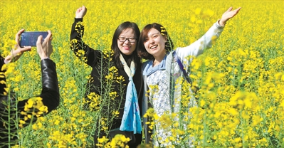 游客在花都油菜花田赏花。广州日报记者邱伟荣/摄