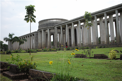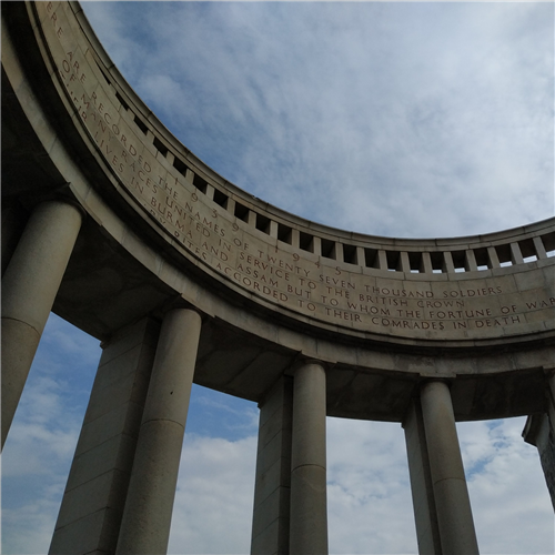 在墓地的圆形建筑上用英文刻着“1939-1945这里记录着27,000名在英国皇家军队服役的来自许多民族的士兵的名字,他们在缅甸和阿萨姆(印度东北一个邦)战斗中献出了自己的生命。由于他们都成为了战争的遗产保留在这里,并不一定按照各自的民族习俗埋葬,死后他们都是同志。他们是为自由而战。”同时也用缅文、印度文、乌尔都文和果鲁穆奇文(旁遮普)题写碑铭。