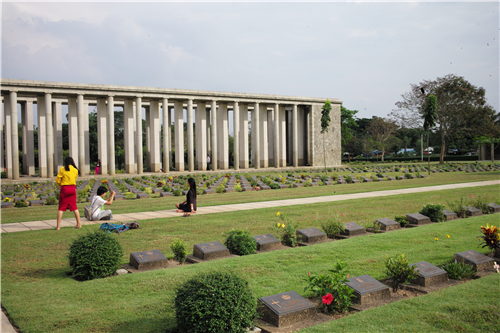 午后阳光热烈,在位于缅甸北郊10英里的Taukkyan公墓(英国联军公墓),地形开阔,青草曼曼。