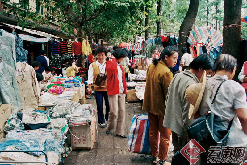《青年路小商品市场一角》(改革开放,市场经济促使个体经济迅猛发展。青年路小商品市场成为全国各地小商贩自发在昆明老城中占地经营的第一个小商品批发市场,是螺蛳湾的前身,其小商品批发辐射到全省各地。)张卫民