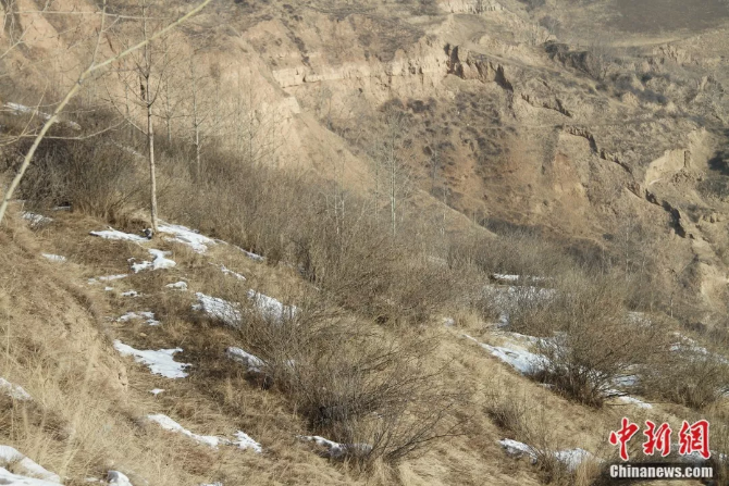 山坡上也种满了黑刺和柠条,远看很难发现,但你走近,便能看到它们一团团的爬满山坡。